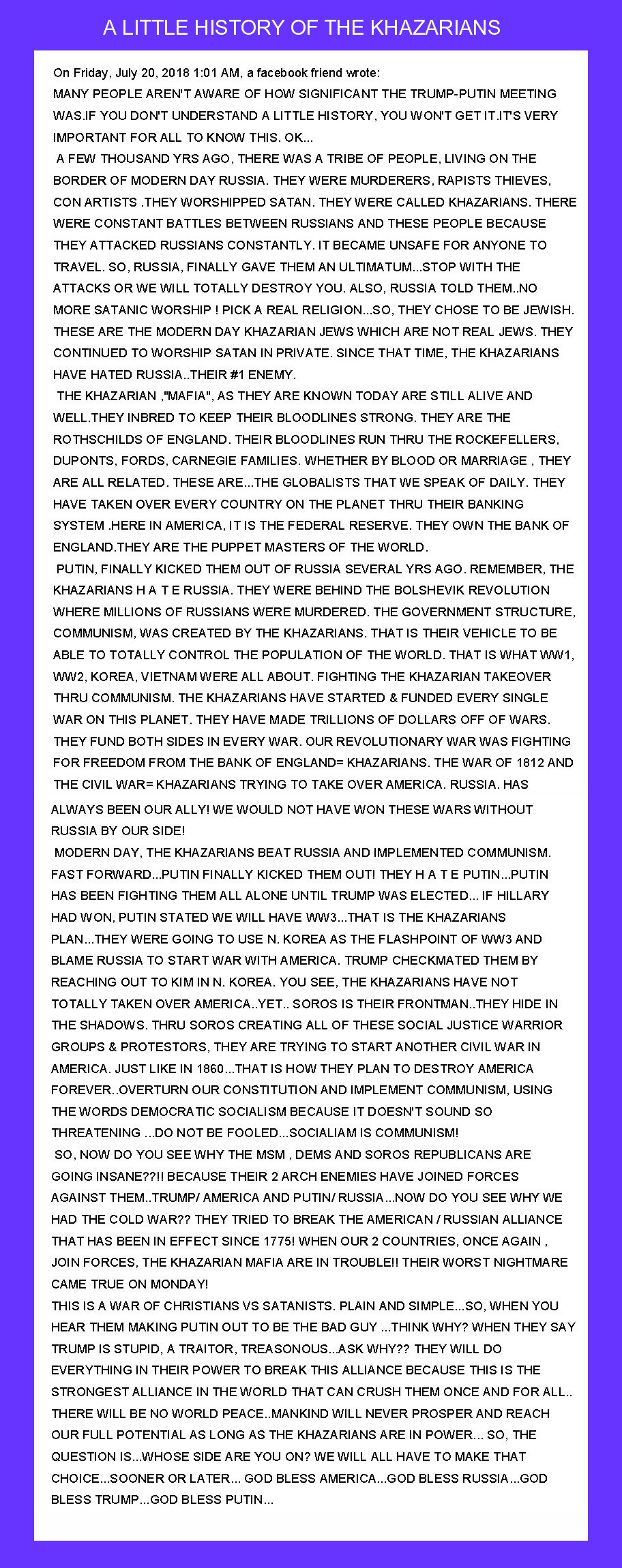 passionate patriot, anon, truther and lover of the Creator and the PLAN,, God bless our President and all those White Hats back to 1963 ,