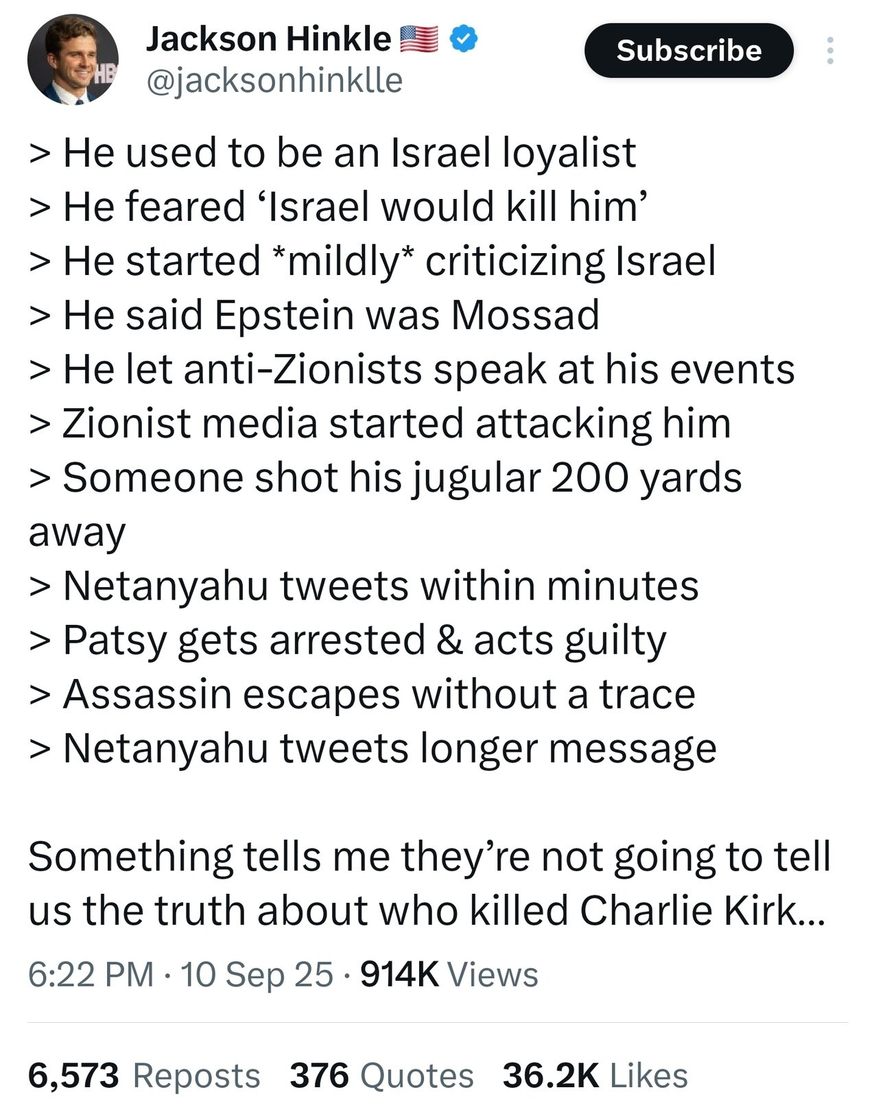 Today, they killed Charlie Kirk so people wouldn’t talk about it.