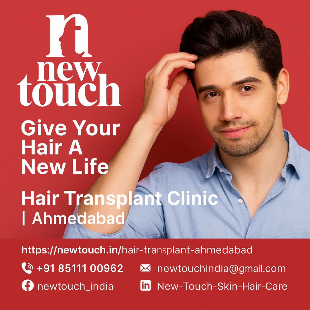 New Touch Skin & Hair Care Clinic offers advanced, result-driven hair restoration treatments designed to help you regain natural hair density with confidence. As a trusted hair transplant clinic in Ahmedabad, we provide personalized solutions including FUE hair transplant services, hair regrowth therapy, and long-term scalp care. Our experienced specialists use modern techniques to deliver minimally invasive procedures with faster recovery and long-lasting results. For more information visit our website: https://newtouch.in/hair-transplant-ahmedabad or call us on: +91 85111 00962.