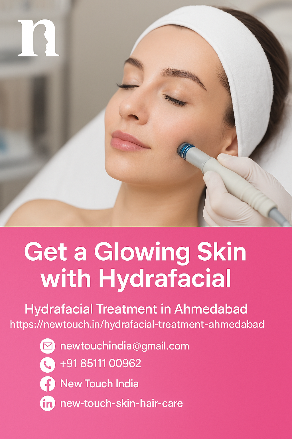 Call now on +91 85111 00962 or visit our website https://newtouch.in/hydrafacial-treatment-ahmedabad to book your hydrafacial appointment today!
