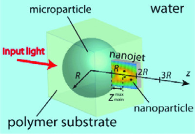 Figure 1. Optically excited quantum dots (QDs) in close proximity to a cell trigger ion-channel opening in the cell membrane. In some cases this response results in signaling between cells. Na+: Sodium ion. K+: Potassium ion. Cl: Chloride ion.
