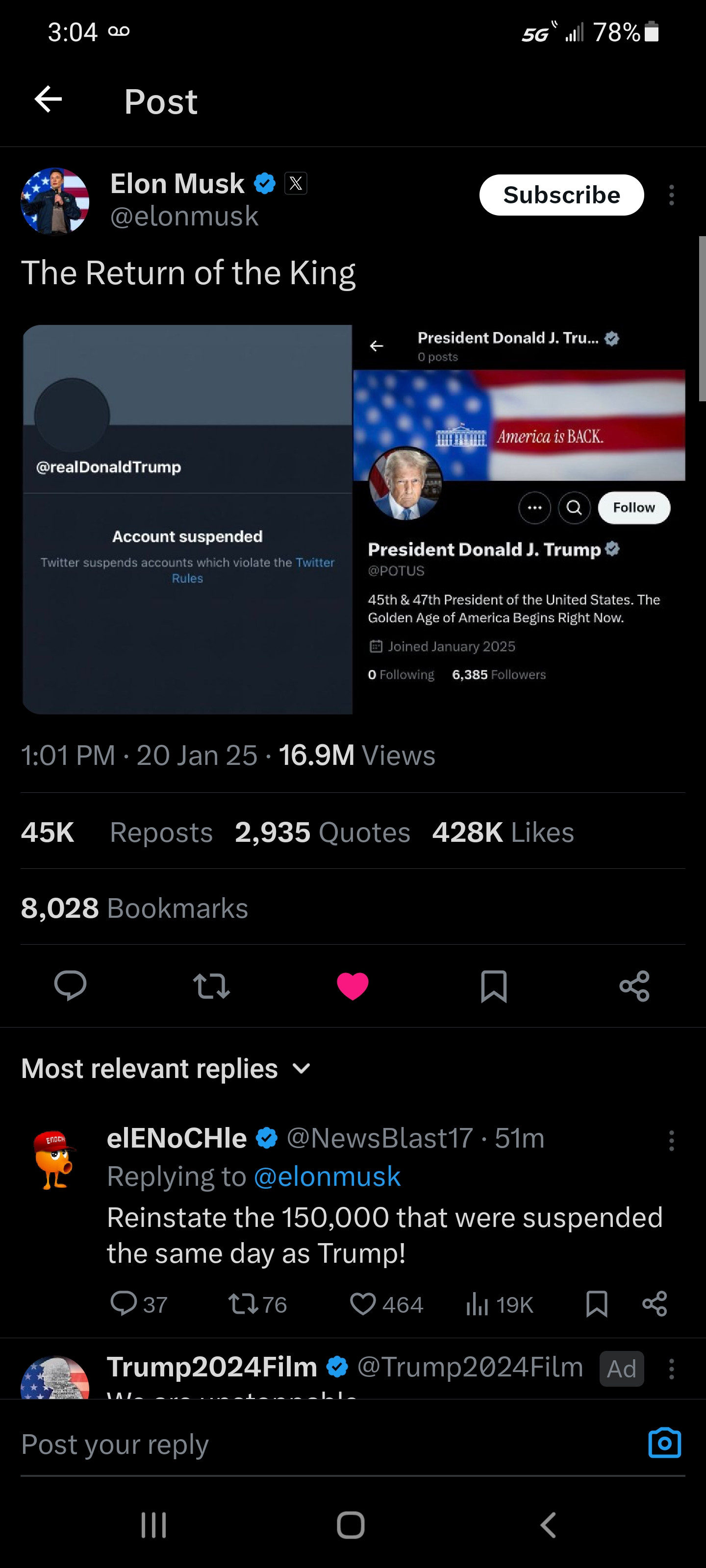 https://x.com/elonmusk/status/1881416718201094254?t=1kYbCCpe9O3TnkKf_4TnYg&s=19