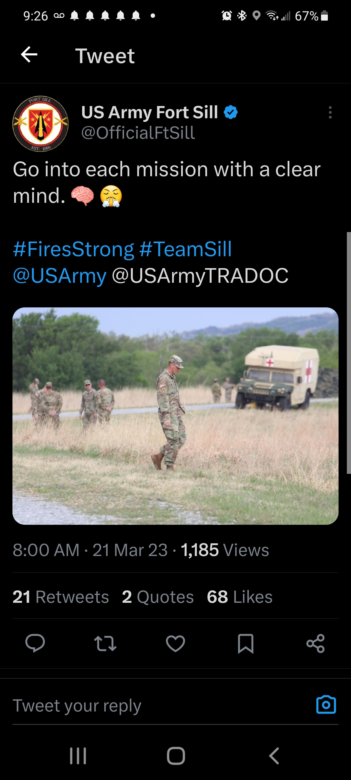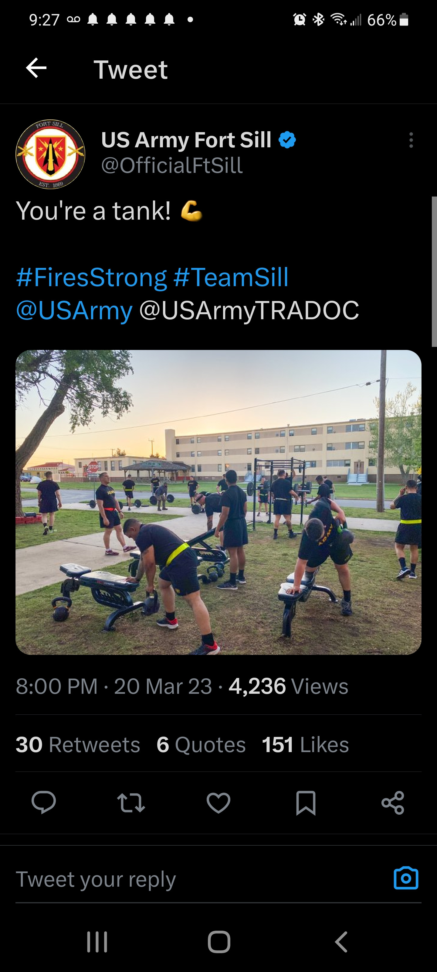 https://twitter.com/OfficialFtSill/status/1637982366185537536?s=19
