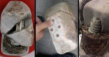 This transformer was found by the photographer and researcher Ismet Smaili in the mountains of Kosovo. What is interesting is that the coils of this transformer are embedded into a stone, but in such a way that is making a common body with the stone.