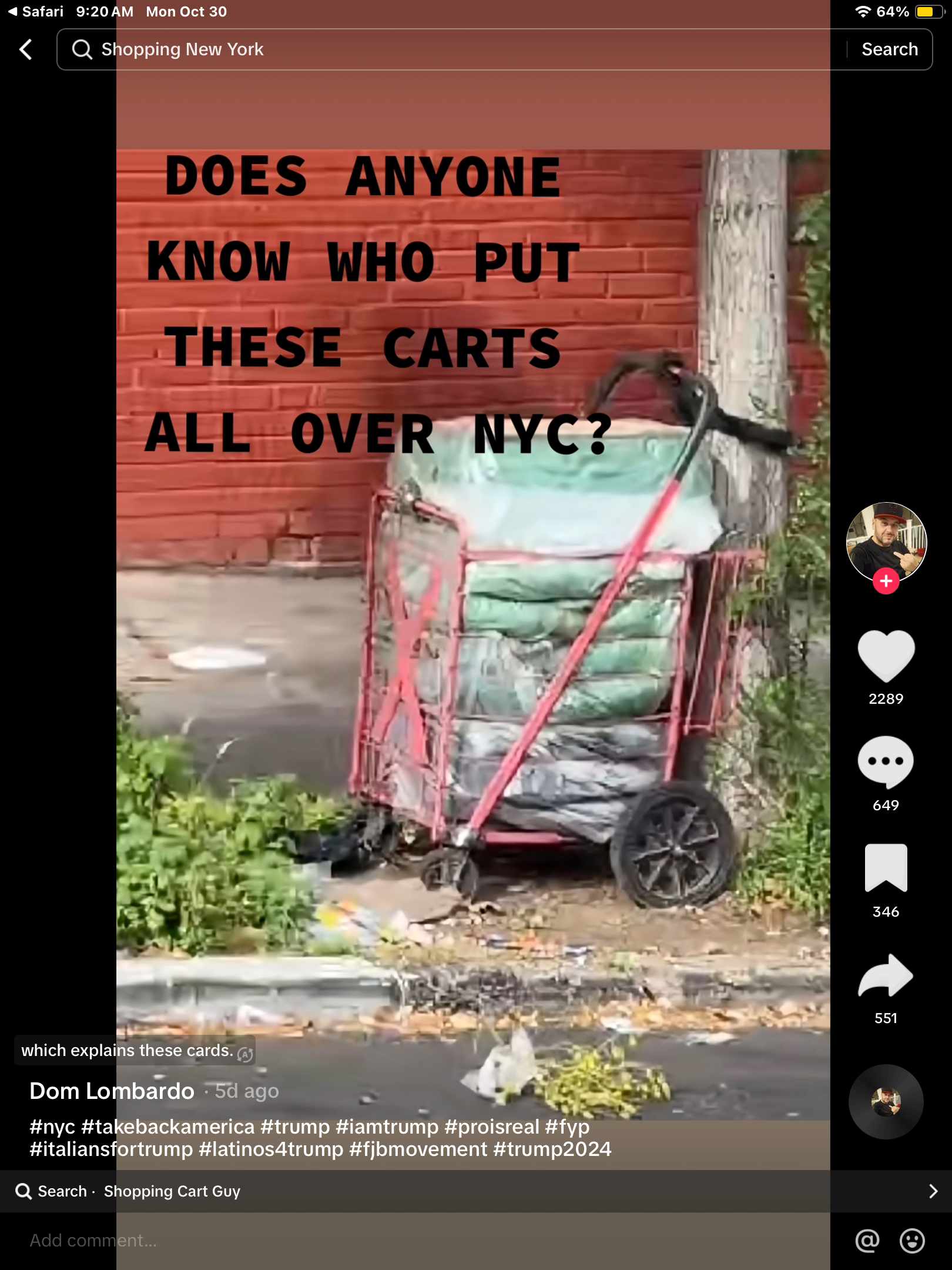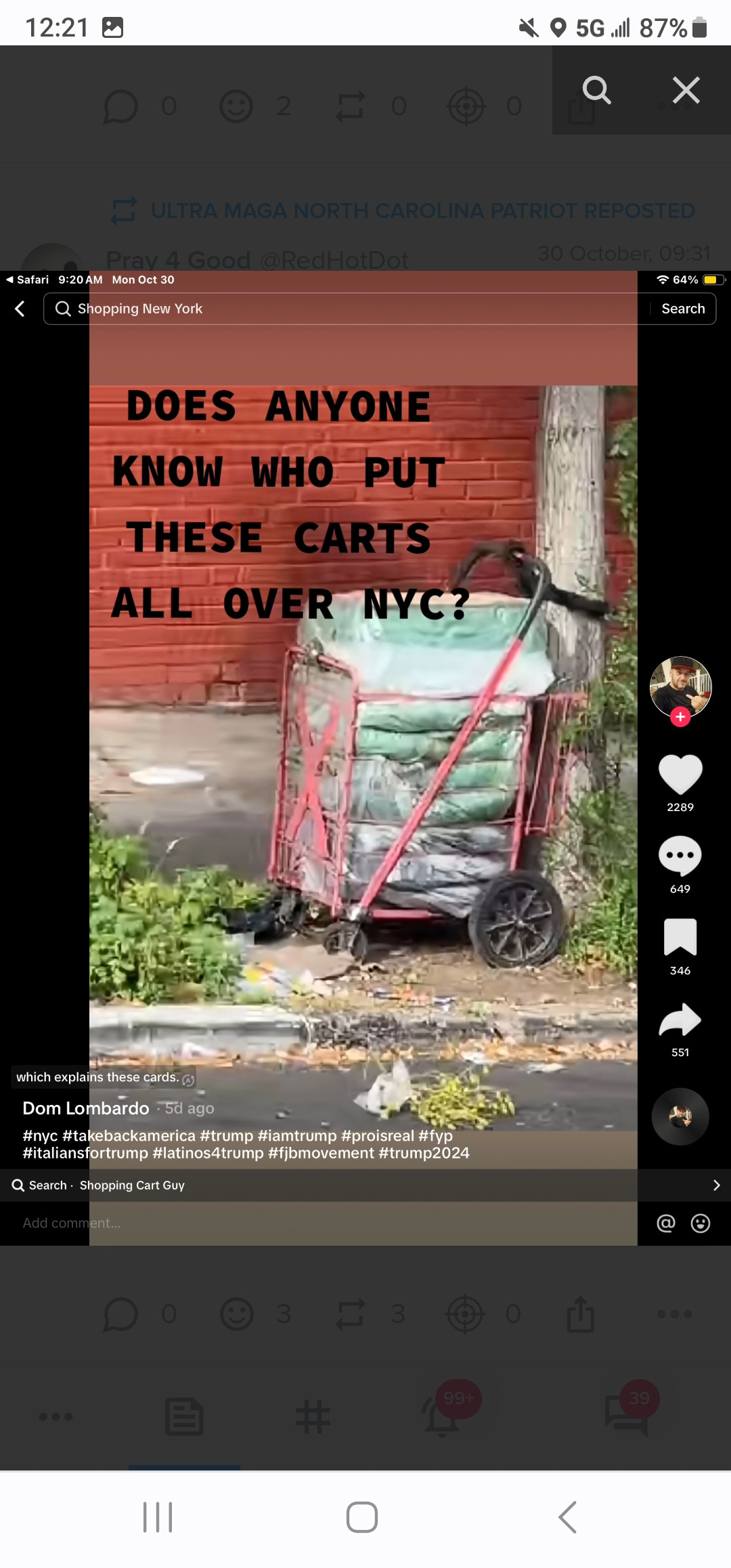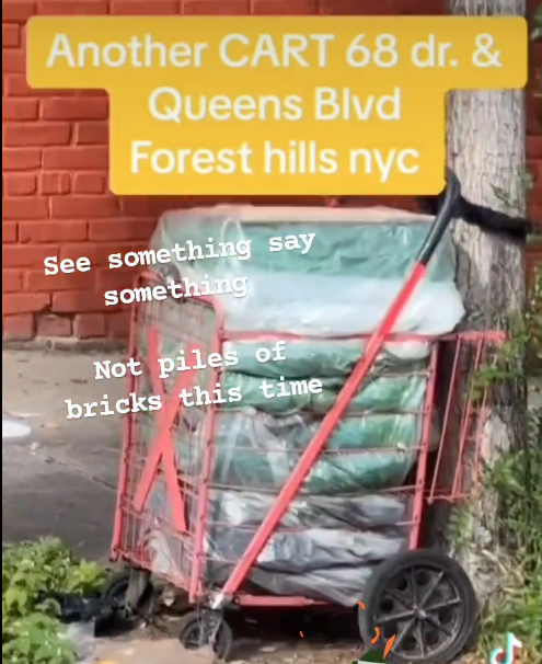 Just saw a video that I can't share....but it was regarding red carts being locked up around NYC. They are filled with green bags. They have a big letter X on the front of the cart. The video mentioned police being notified.