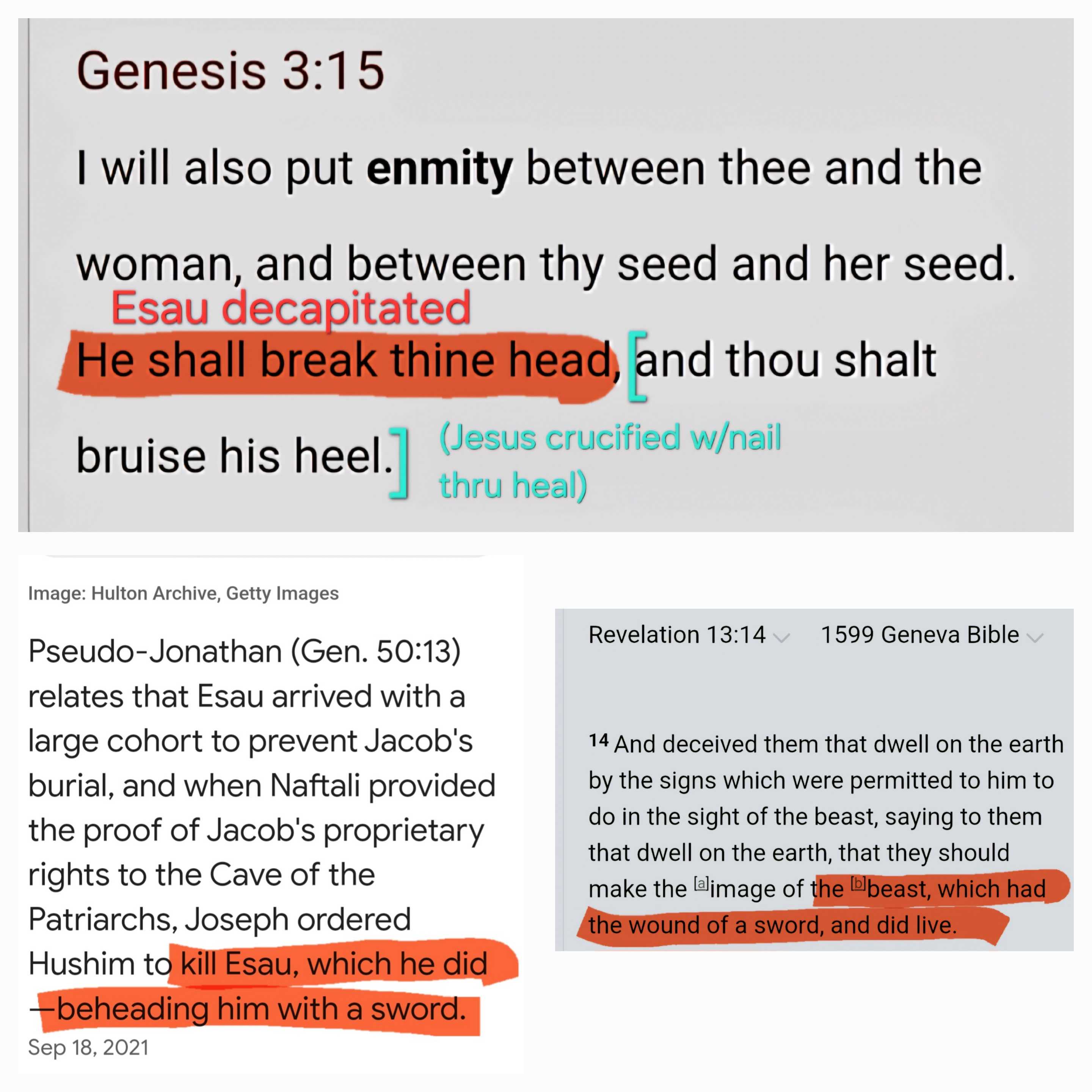 Esau in the midst of the battle, and he slew Esau with a sword, and he cut off his head,
