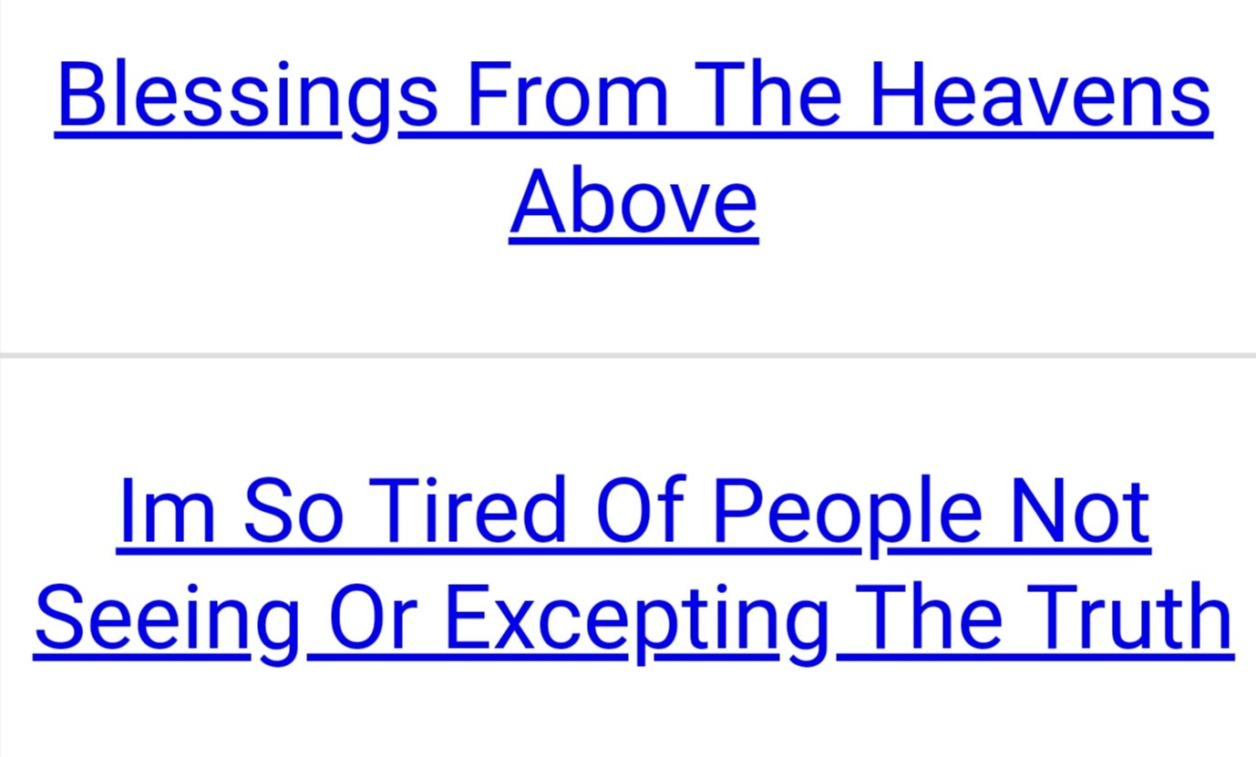 You Were Chosen For A Reason / Sword B No Turn Jc / C Aware Of The Work MK / How Can I Not Hurt You / O Austins In A Wheel Of Torture / Being God Jc Holy Word / Jesus Revolution / Planet Saturn Set The Wicked Up C / Twin Currents Symbolβ/ Decode It Install Call On The Forces Of The Universe / Be If You Lying You Cant Be Christ / The King Who Is To Be The Bright Morning Starβ/ Today Is The Day Of Salvation / Jesus Be What Is Coming / Water Into Wineπ§π·/ Jesus Is Coming For You Soon / The Family Jewels I Am / Is It Free Will Or Is It Destiny / That They May Rest From Their Labours / Decode I Loved You Since The Day We Met / The Real King And Queen Is Coming Soon /Sorry About Mixed Messages Hannah / Lord All I Ever Wanted Was To Be Lovedβ€/Who Will Put An End To The Endless /No Man Is Clean That Walks This Earth