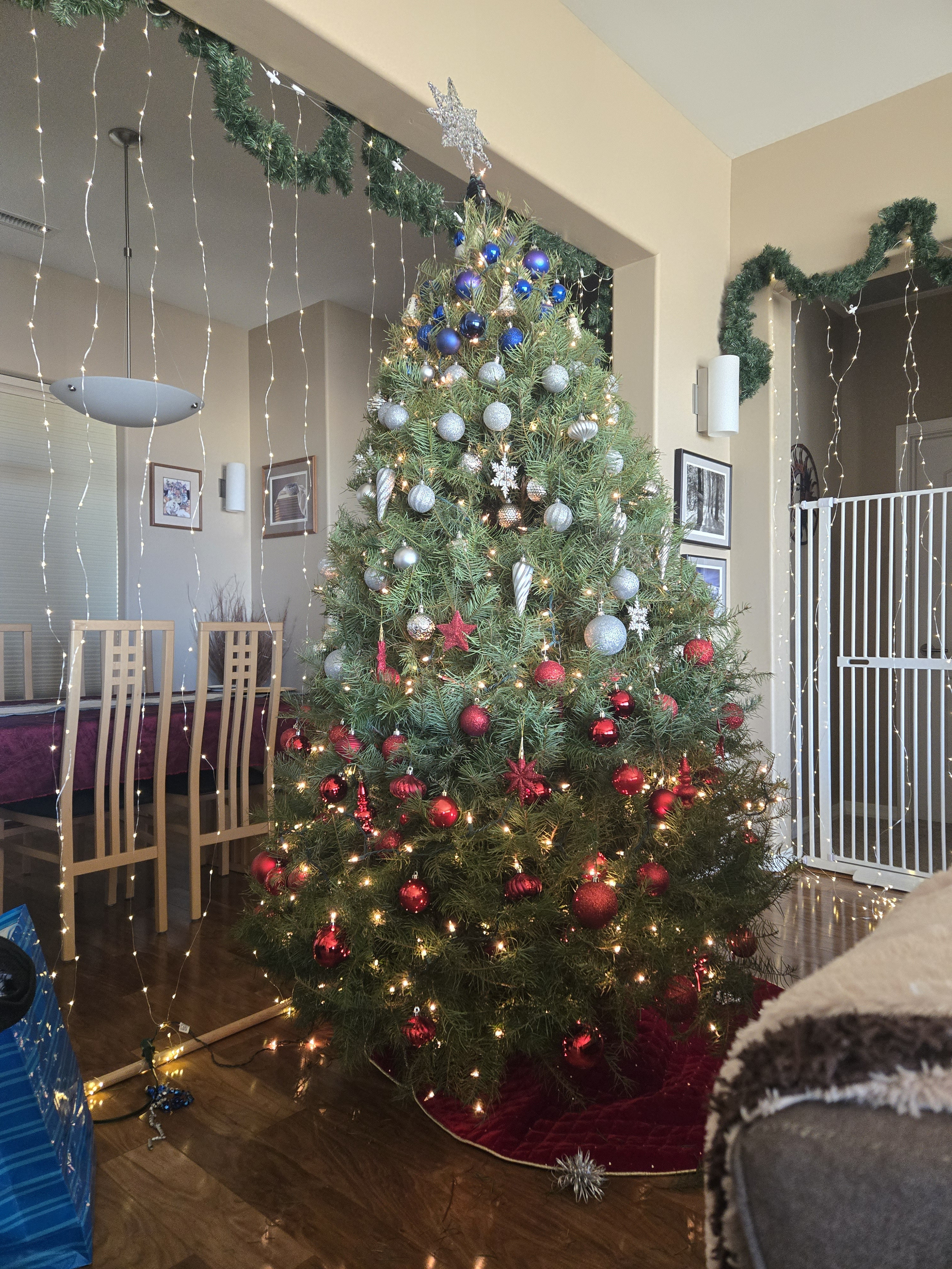 Here is my tree, the celebration of another year... I used red, white and blue this year in honor of Trumps win.
