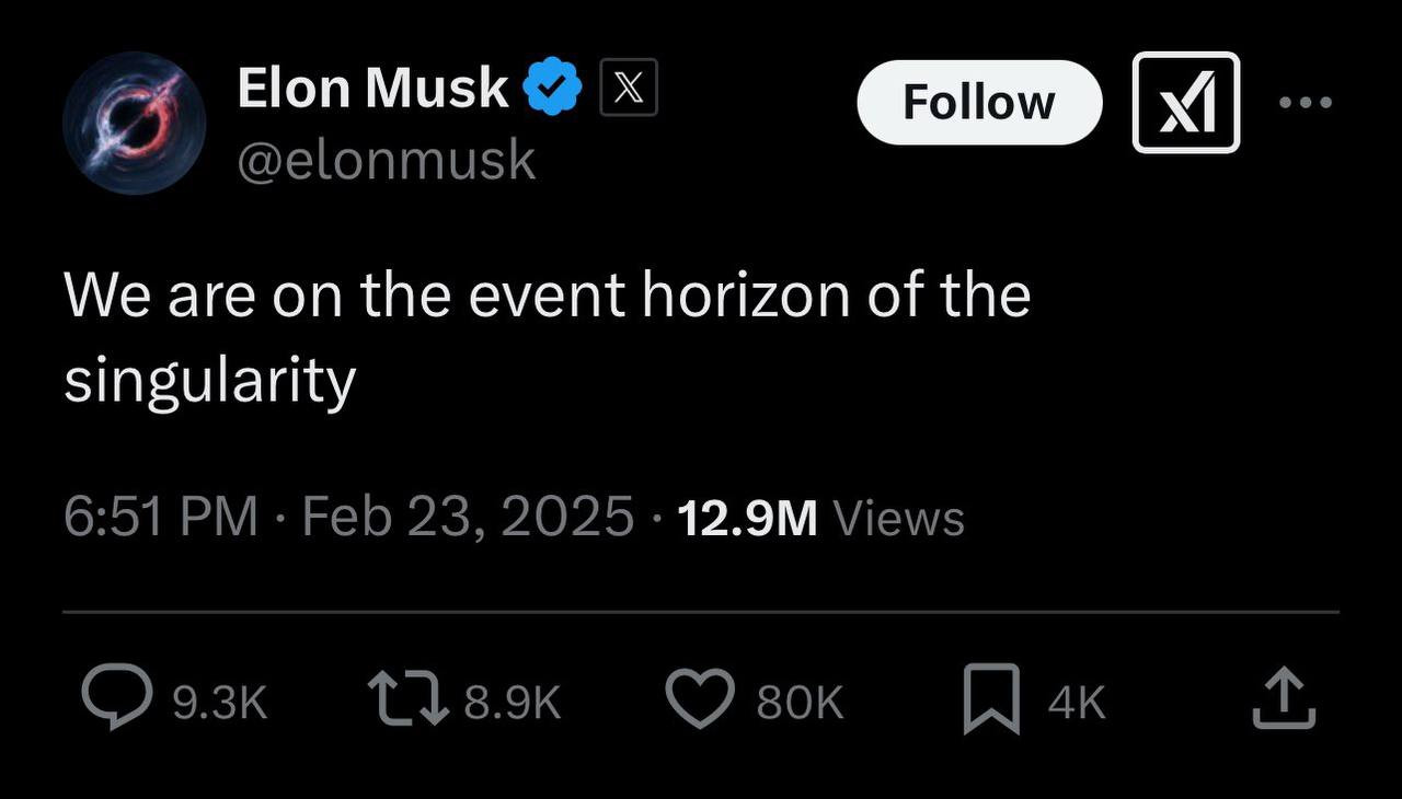 Musk has repeatedly said ‘we are on the "event horizon” of the singularity,’ most recently on February 23, 2025