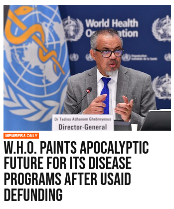 Of course they go the route of apocalyptic "there goes the health of the world population" by not having $ for evil DEPOPULATION-they just don't want to admit that very last part outloud. Even though it's simple to connect the dots that they aren't FOR US but FOR CONTROL.