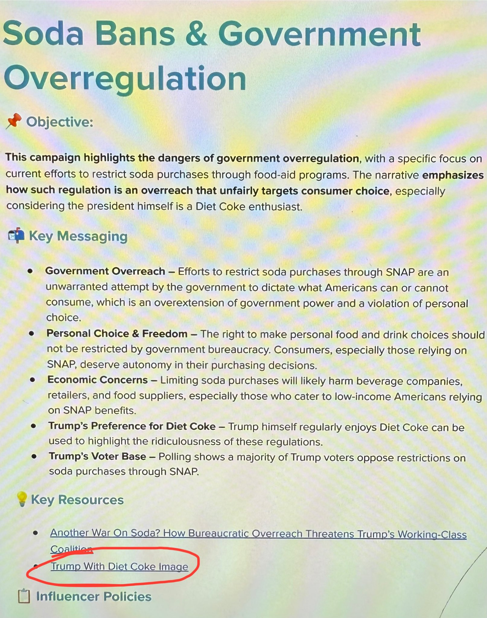 These influencers were given a couple templates to use by Influenceable, with one of those templates SPECIFICALLY telling them to mention Trump’s Diet Coke habit