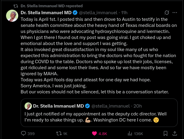 I love this, as she was on the forefront trying to warn people about the covid vaccine. A very brave lady!!!