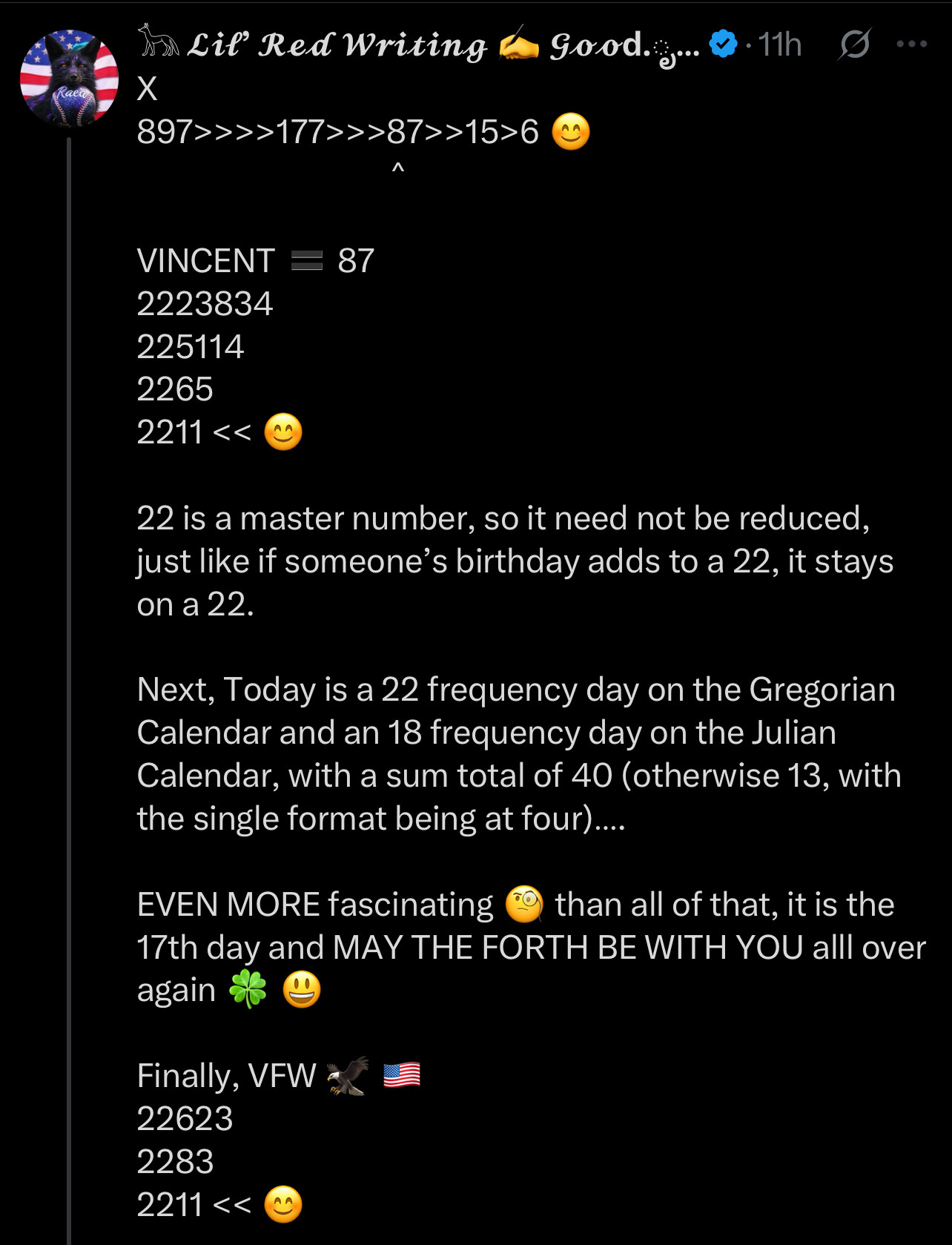 14:14, today is May the Forth Be With You on the Julian Calendar 🗓️ have a wonderful weekend angels 😇