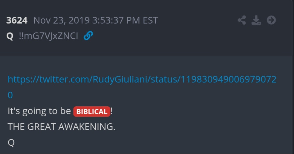 I don't want to sound blasphemous, but Jesus said he is the light of the world. Q said it's going to be BIBLICAL.