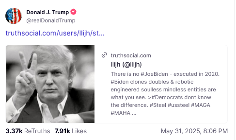 President/CiC Trump Truthed a link to llijh @ llijh