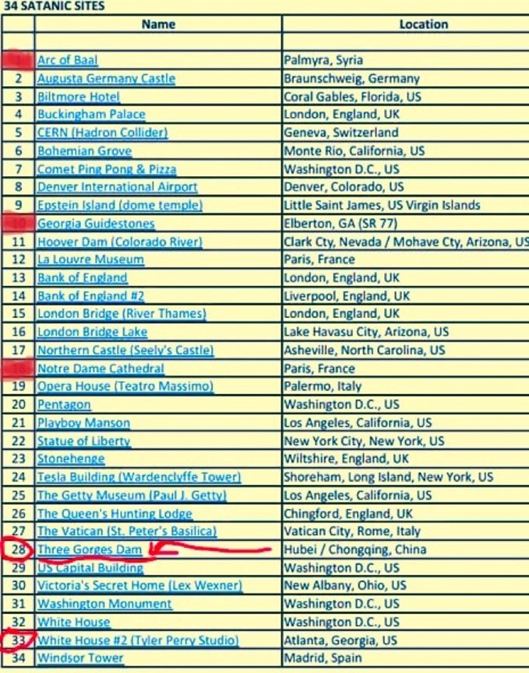 We have/ had "17 cities"on a list...what 3 cities were removed from list?