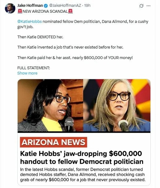 https://x.com/JakeHoffmanAZ/status/1943069733659807928?ref_src=twsrc%5Etfw%7Ctwcamp%5Etweetembed%7Ctwterm%5E1943069733659807928%7Ctwgr%5E%7Ctwcon%5Es1_&ref_url=https%3A%2F%2Fcactuspolitics.com%2F2025%2F07%2Fhoffman-condemns-sickening-cronyism-scandal-surrounding-katie-hobbs%2F