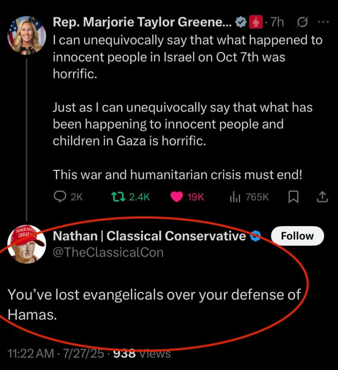 This is what we’re up against. Marjorie Taylor Greene’s words are simple, truthful, and compassionate. She is simply condemning the horror inflicted on all innocent lives, whether in Israel or Gaza. Yet even that basic humanity is seen as “defending Hamas” by those so deeply programmed by decades of Zionist indoctrination that they can no longer separate politics from faith.