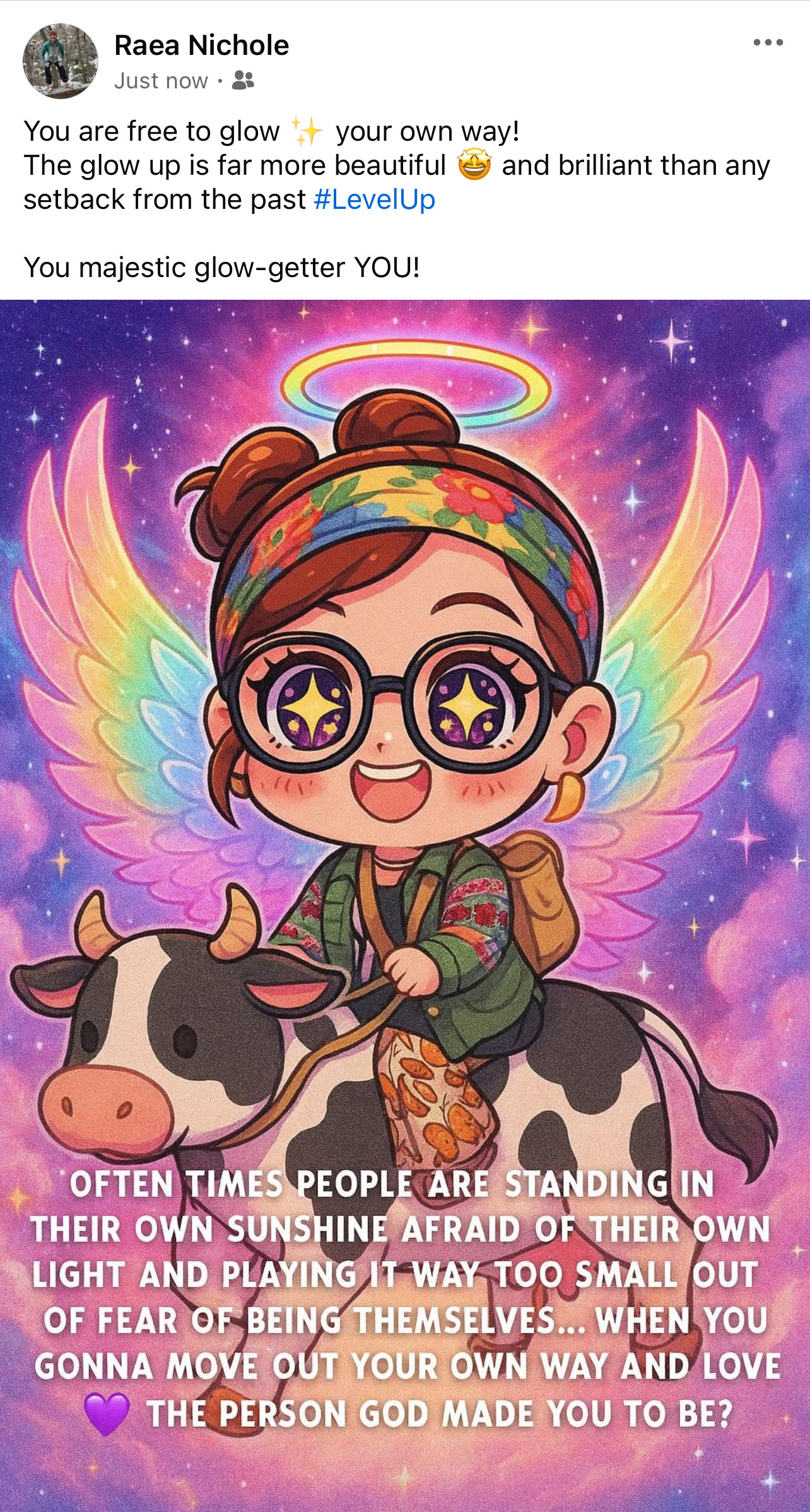 I’ve been stirring up moo'vement in your soul, whispering through the universal winds so you remember your worth, your value, your boundaries, and your divine calling from above. I’m not here to teach you how to play it small. I’m here to remind you how to glow.