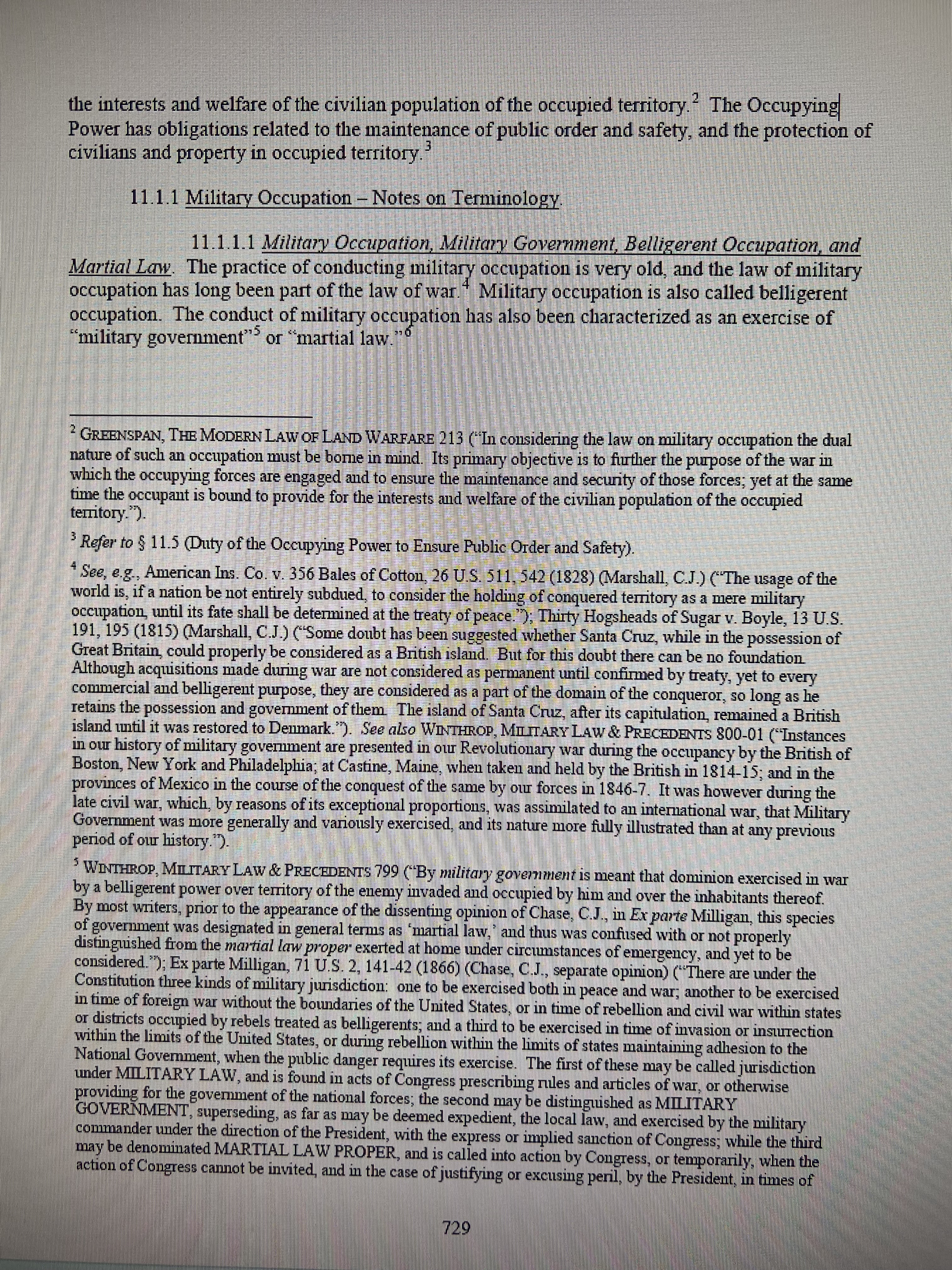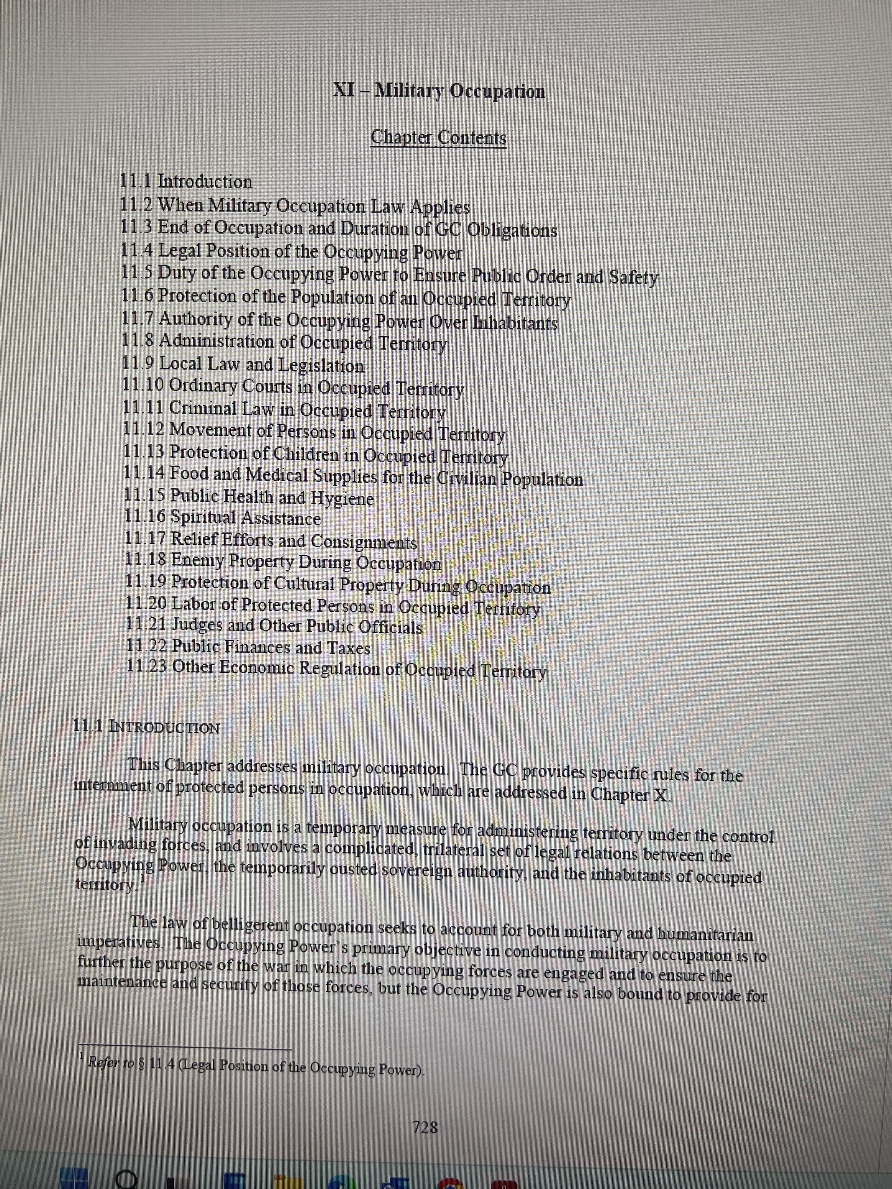 Verifies Section 11.1, Military Law of War, page 728-729 (2016 Revision).