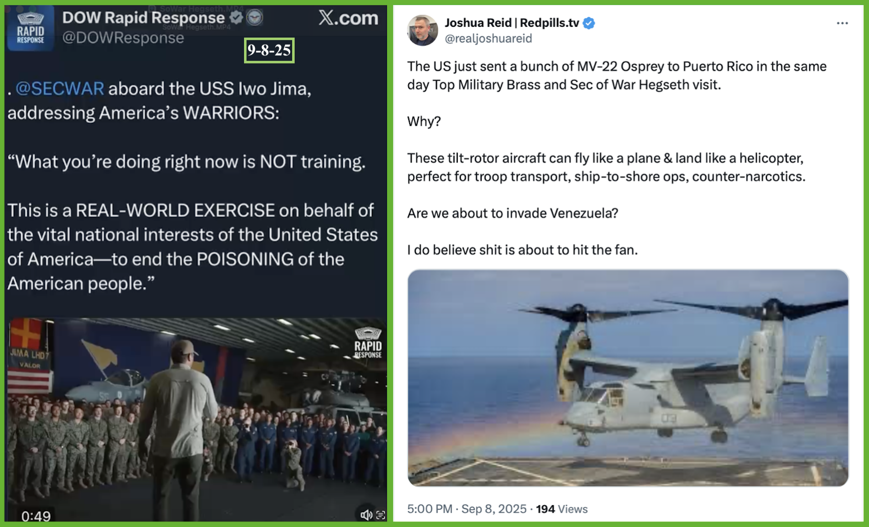 9-8-25 🇺🇸 Sec of War, Pete Hegseth, is aboard the USS Iwo Jima