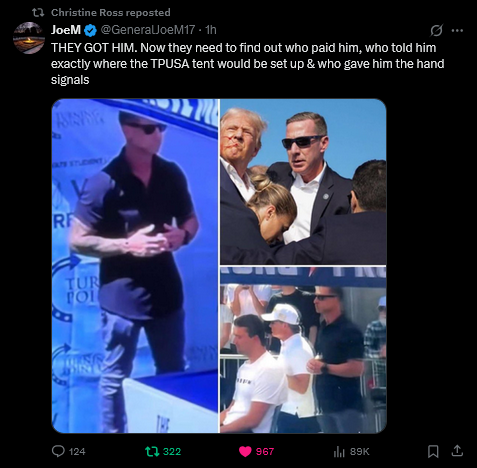 My gut is telling me he’s a patsy, and that there is a much larger story here that they are covering up or concealing. What about the 3 guys right around Charlie giving signals. And what about the guy in the crowd who is celebrating right after the shooting. I have a hard time believing the narrative that is being promoted. We get lied to about everything, why would this be any different??? Just my opinion