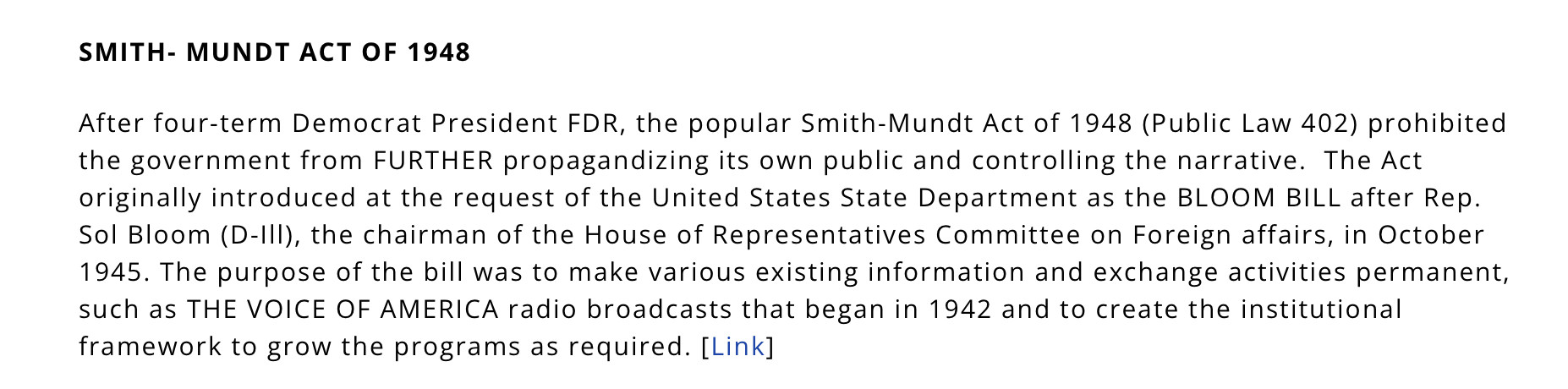 Maybe this SMITH-MUNDT ACT will put an end to all these false narratives.