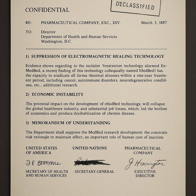 • A classified pharma memo admits MedBeds could erase chronic disease within a year.
