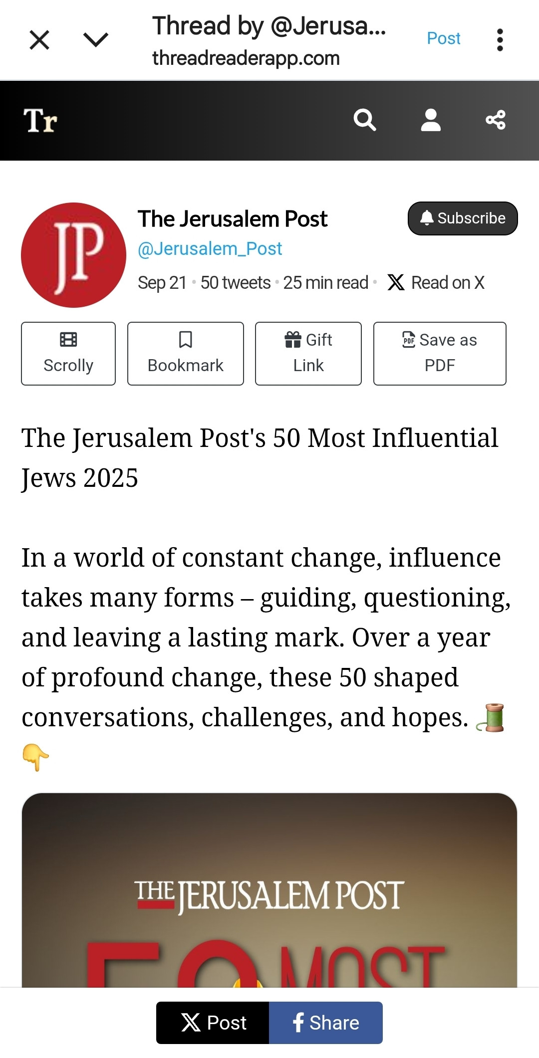 @Jerusalem_Post: The Jerusalem Post's 50 Most Influential Jews 2025 In a world of constant change, influence takes many forms – guiding, questioning, and leaving a lasting mark. Over a year of profound change, these...…
