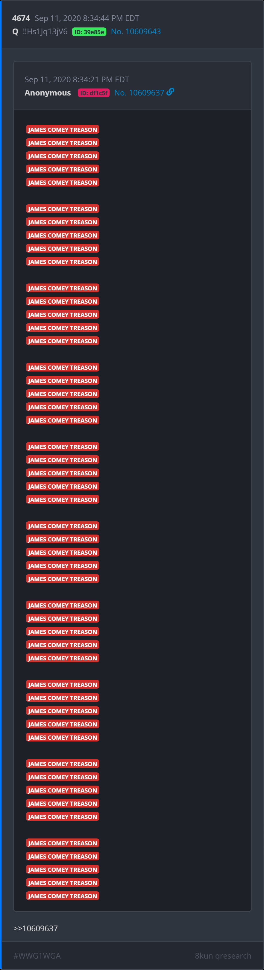 Hopefully, Comey's indictment is the tip of the iceburg. Comey and his rat-pack have had their fingerprints on all sorts of nefarious actions. This can't be the only crime of his that we have the goods on.