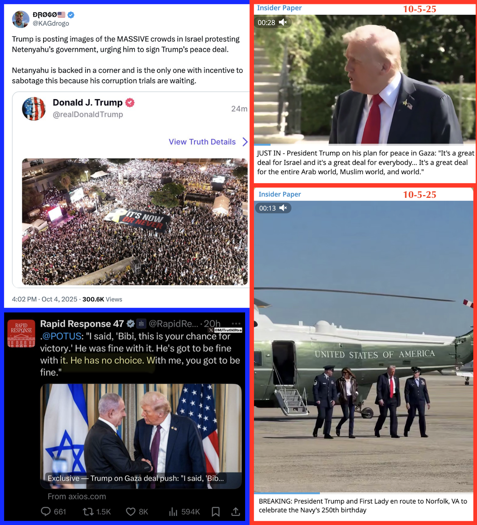 Trump is posting images of the MASSIVE crowds in Israel