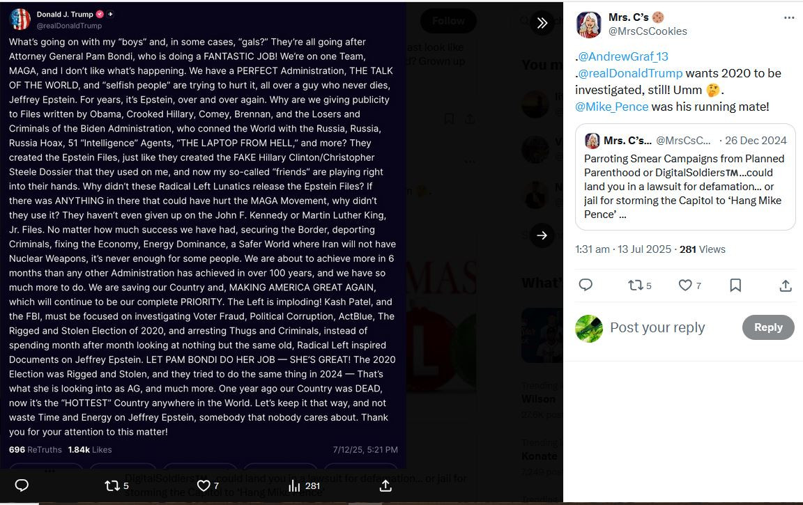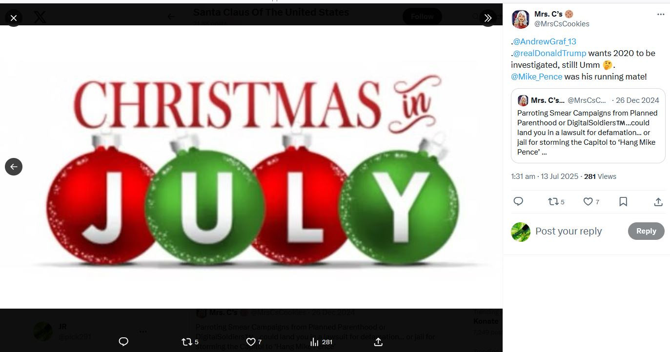 Mrs. C’s 🍪 (@MrsCsCookies) _ X MIKE PENCE Q 54 TRUMP TURNBERRY JULY 25 CHRISTMAS AS THE WORLD TURNS 11.3.24 JEREMIAH 29.11 522