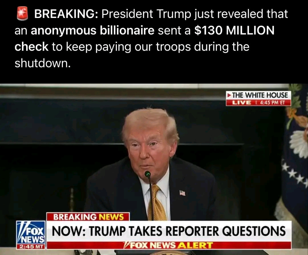 BREAKING: President Trump just revealed that an anonymous billionaire sent a $130 MILLION check to keep paying our troops during the shutdown.