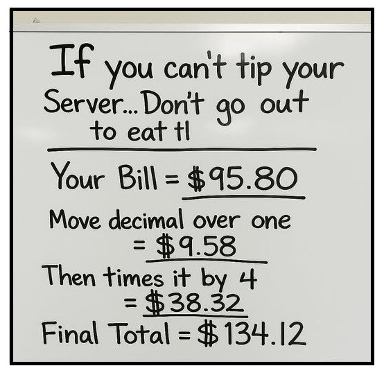 Yes, I was thinking so, as well, after I digested it. It's more 40% than 25% which would be a $24 tip on $96. 30% would be like $32 and a 40% would be $38.40. Sorry, I am a creative right brain, but I inherited a weird love of numbers. I don't practice much. 😂