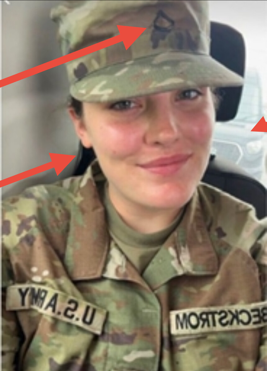Her and the not-centered PFC Rank of only 2 photos all over social media when they say “she’s” a 20 year old SPC…