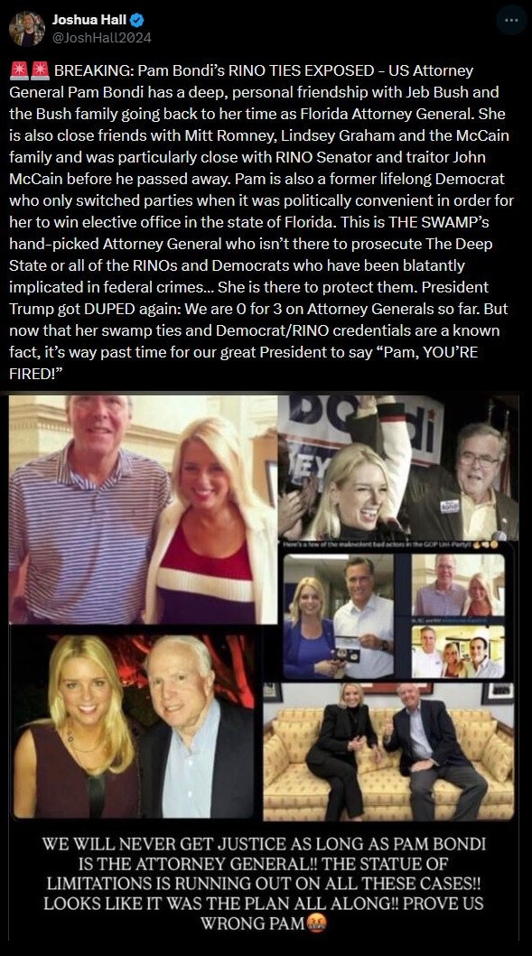 Patel, Bondi, Tucker, Charlie and many others were replaced and are now used by DJT and the white hats. Do you really think there are any important positions not controlled by the white hats? And nobody dupes President Trump. He knows exactly what he is doing.