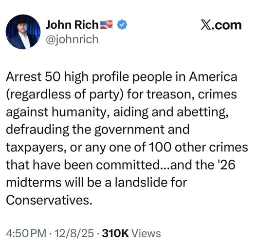 …… and adopt an American only policy, stop sending our $ to foreign countries, stop the endless praise and support for countries that are threatening/influencing our US citizens and politicians, stop election interference, do a real investigation into Charlie Kirk’s murder, put all of the evil doers in jail, and stop pretending that the Epstein files / list is fake or a hoax.
