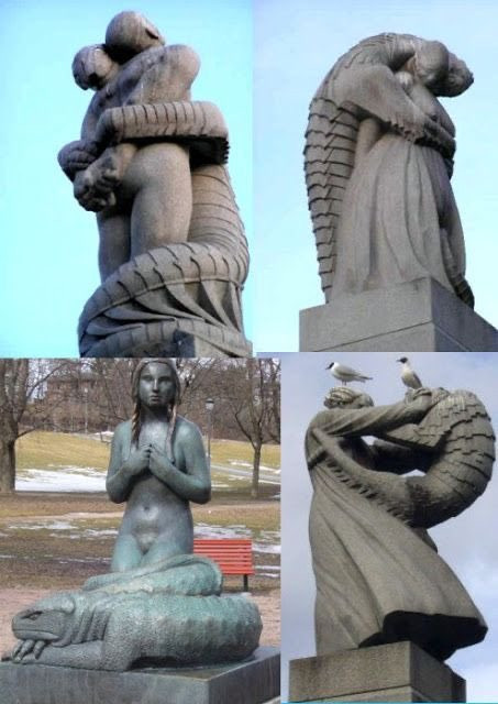Vigeland Park in Oslo is a major tourist attraction. This sculpture park in the Frogner Park has more than 200 sculptures by Gustav Vigeland (1869–1943) in bronze, granite and cast iron. If you study these sculptures you will find many are Reptilian-themed and tell the story of humanity’s interaction with Reptilian entities. In particular, they show how the Reptilians interbred with women and now control things covertly.