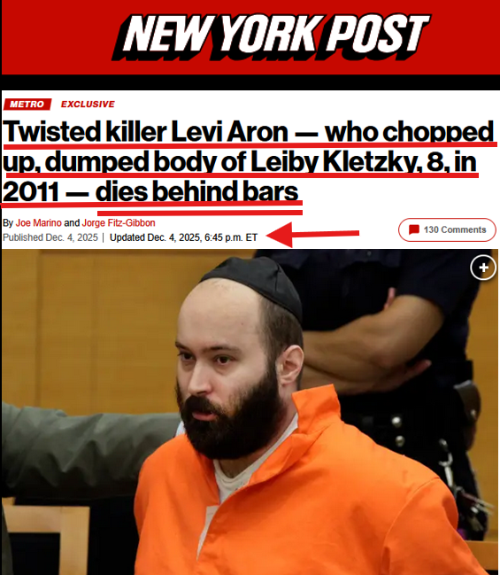 Levi Aron, the man convicted of the 2011 kidnapping and murder of 8-year-old Leiby Kletzky in Brooklyn, died at a hospital in Erie County, New York, on December 3, 2025, at the age of 49.