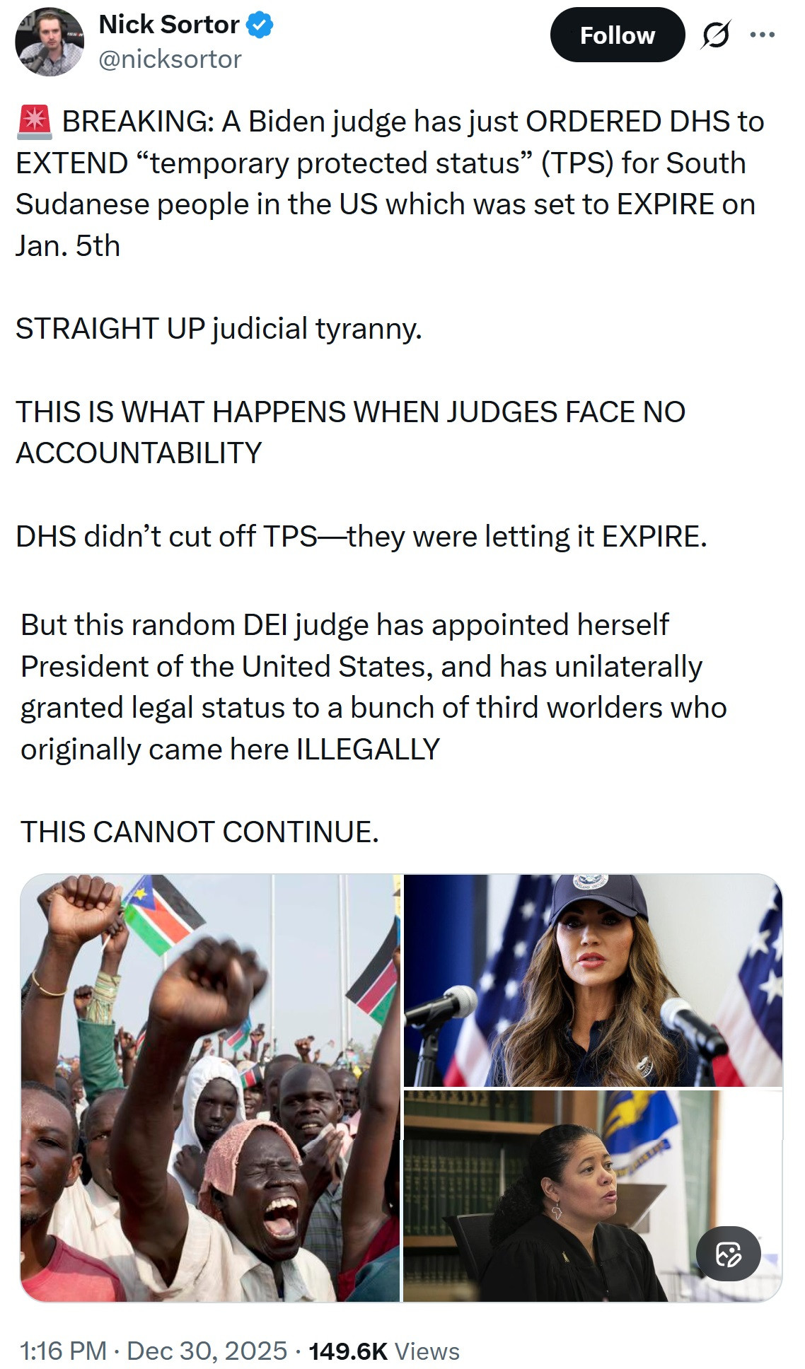 The judiciary must be brought under control. Itβs ridiculous that one lower level judge somewhere can override our president.