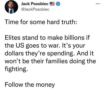 There won't be war. Fear monguering again to trigger our conscious mind into fear, AGAIN. Q said; "you can't tell people, you have to show them". Jack is a Mosad shill. I don't trust him. He is very subtle. Watch him closely, you might pick that up.😉