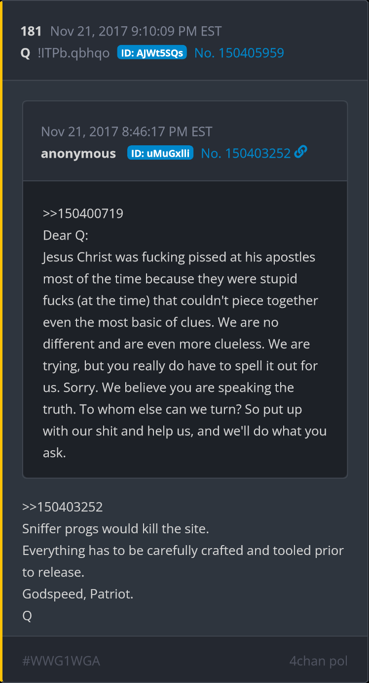 Jesus Christ was fucking pissed at his apostles most of the time because they were stupid fucks (at the time) that couldn't piece together even the most basic of clues. We are no different and are even more clueless. We are trying, but you really do have to spell it out for us. Sorry. We believe you are speaking the truth. To whom else can we turn? So put up with our shit and help us, and we'll do what you ask.
