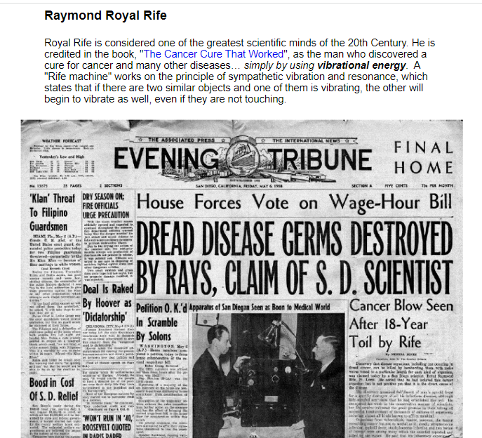 Dr. Royal Raymond Rife and the Rife Machine