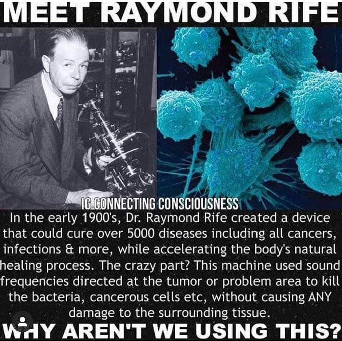 Dr Royal Rife was curing cancers & kill viruses with frequencies in the 1930's. But Just like all alternative cures & medical techniques that didnt require Pharmaceuticals, he was shut down by big business .